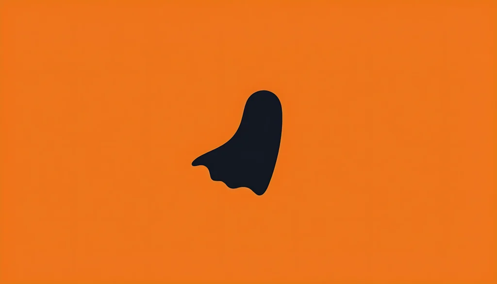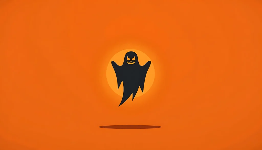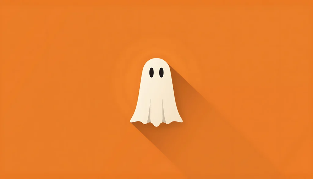 A cute, simple white ghost floating over a warm orange background — clean and modern.