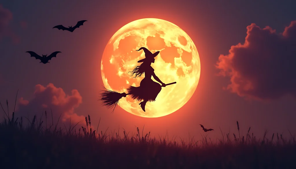 A witch flying across a glowing moon — perfect for fantasy or anime lovers.