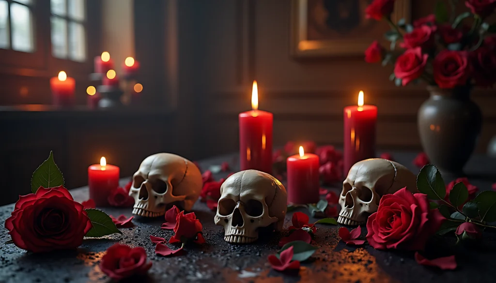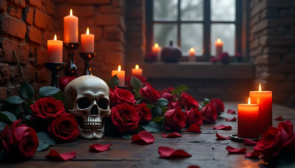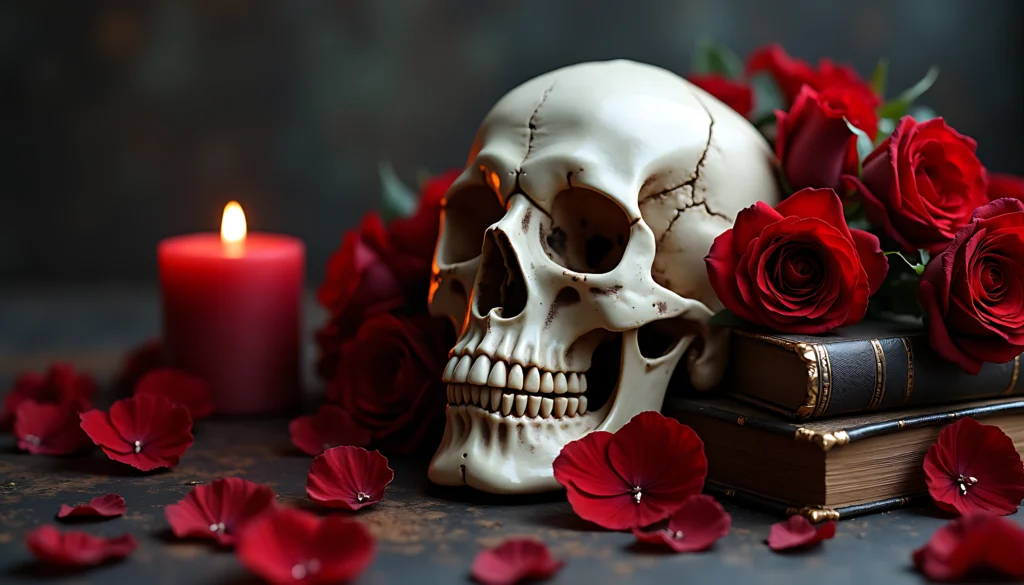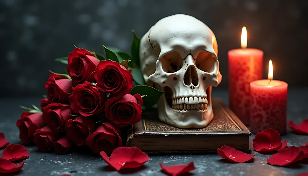 A beautiful dark-romantic still life — aesthetic and haunting.