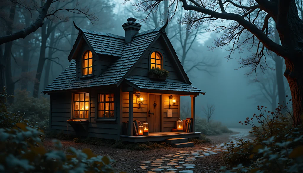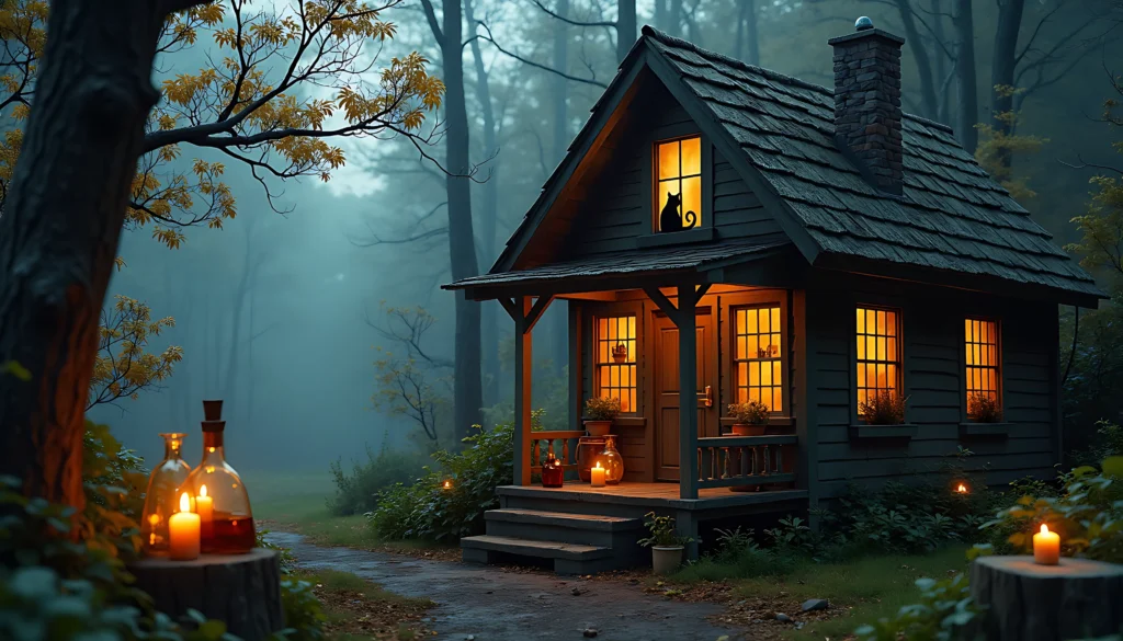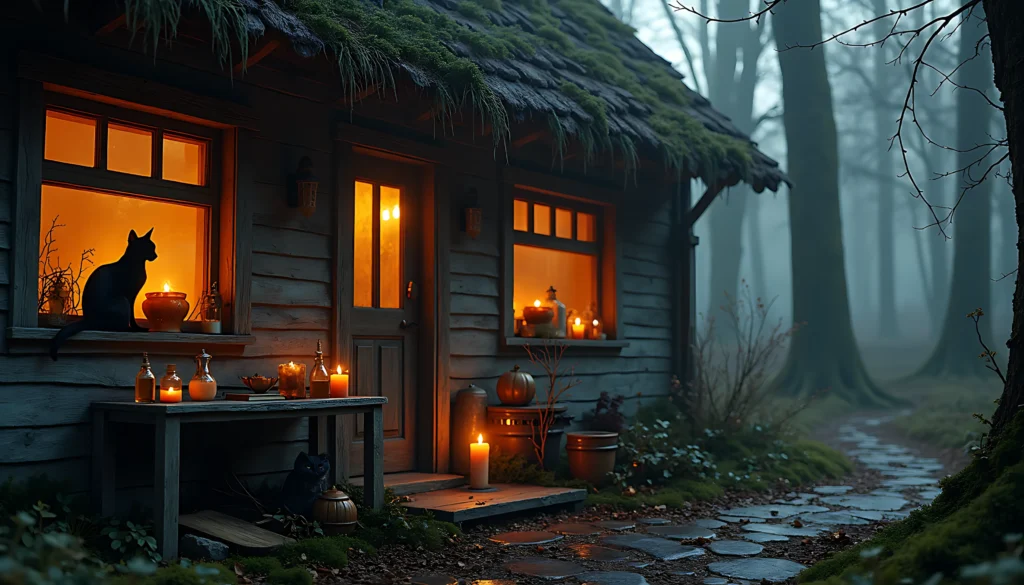 Warm candlelight, potions, and a black cat waiting by the window — cozy witchcore vibes.